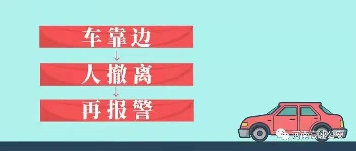 3、谨记九字警句。行经高速公路,发生故障或交通事故,要严格落实“车靠边人撤离 即报警”要求,立即开启危险报警闪光灯,在来车方向150米处摆放警告标志,车上人员迅速撤离至护栏外安全地点,打电话报警等待救援,避免发生二次事故。